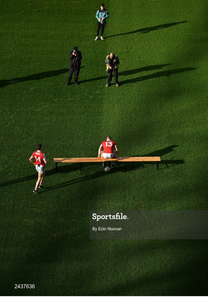 19 February 2023; Brian Hurley of Cork takes his position on the bench ahead of the team photograph before the Allianz Football League Division Two match between Cork and Dublin at Páirc Ui Chaoimh in Cork. Photo by Eóin Noonan/Sportsfile