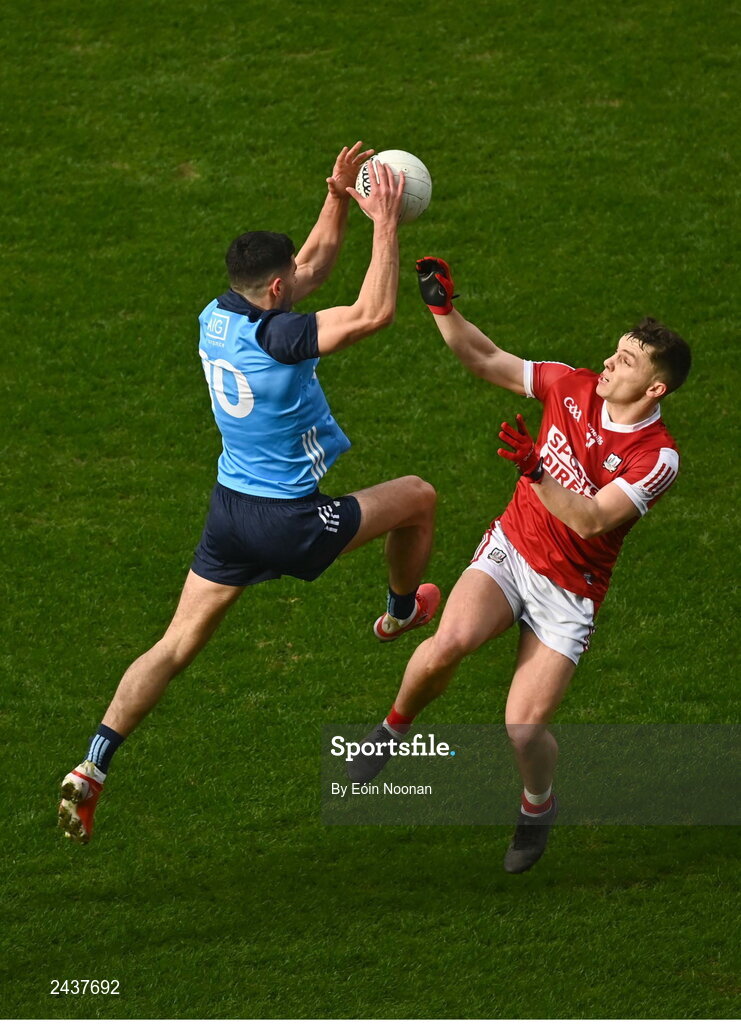 19 February 2023; Niall Scully of Dublin in action against Sean Powter of Cork during the Allianz Football League Division Two match between Cork and Dublin at Páirc Ui Chaoimh in Cork. Photo by Eóin Noonan/Sportsfile