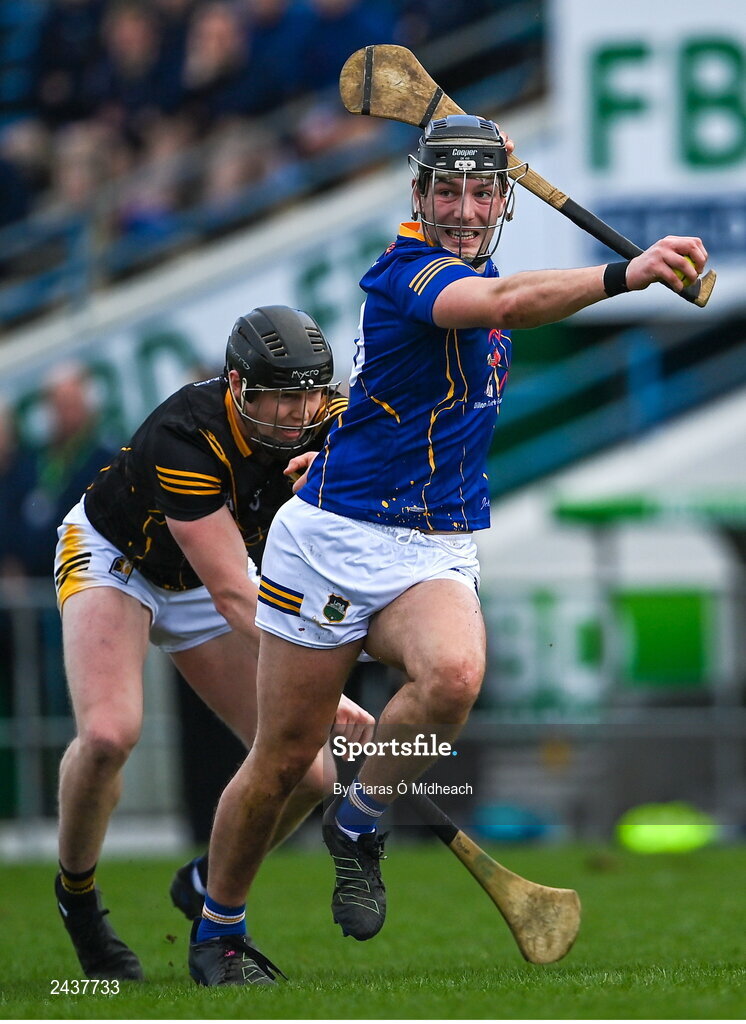19 February 2023; Kian O'Kelly of Tipperary in action against Pádraic Moylan of Kilkenny during the Dillon Quirke Foundation Hurling Challenge match between Tipperary and Kilkenny at FBD Semple Stadium in Thurles, Tipperary. Photo by Piaras Ó Mídheach/Sportsfile