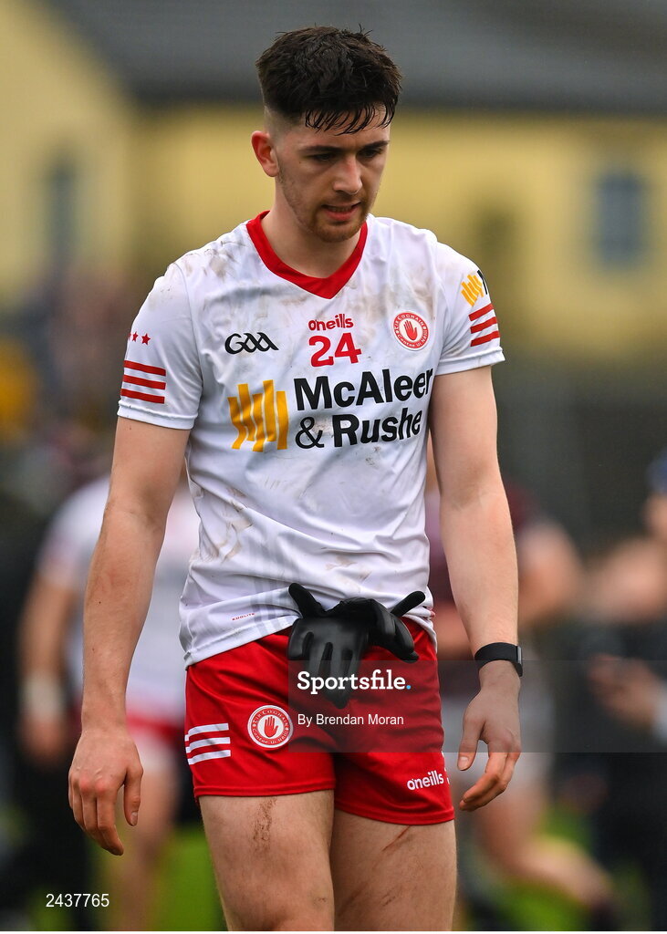 19 February 2023; Joe Oguz of Tyrone leaves the pitch after the Allianz Football League Division One match between Galway and Tyrone at St Jarlath's Park in Tuam, Galway. Photo by Brendan Moran/Sportsfile