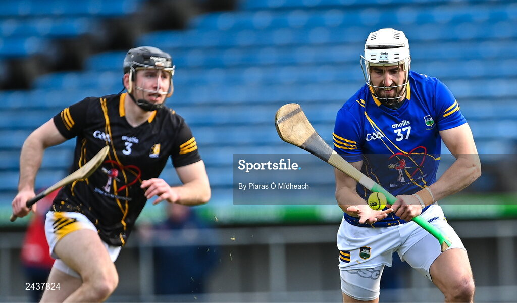 19 February 2023; Patrick Maher of Tipperary in action against Conor Delaney of Kilkenny during the Dillon Quirke Foundation Hurling Challenge match between Tipperary and Kilkenny at FBD Semple Stadium in Thurles, Tipperary. Photo by Piaras Ó Mídheach/Sportsfile