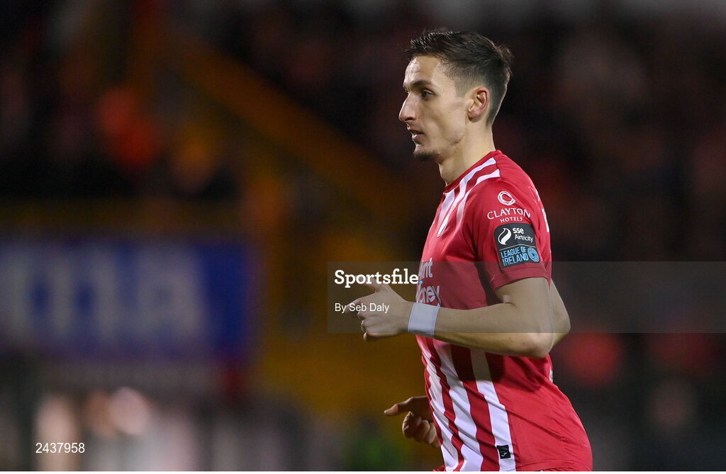 18 February 2023; Lukas Browning of Sligo Rovers during the SSE Airtricity Men's Premier Division match between Sligo Rovers and Shamrock Rovers at The Showgrounds in Sligo. Photo by Seb Daly/Sportsfile