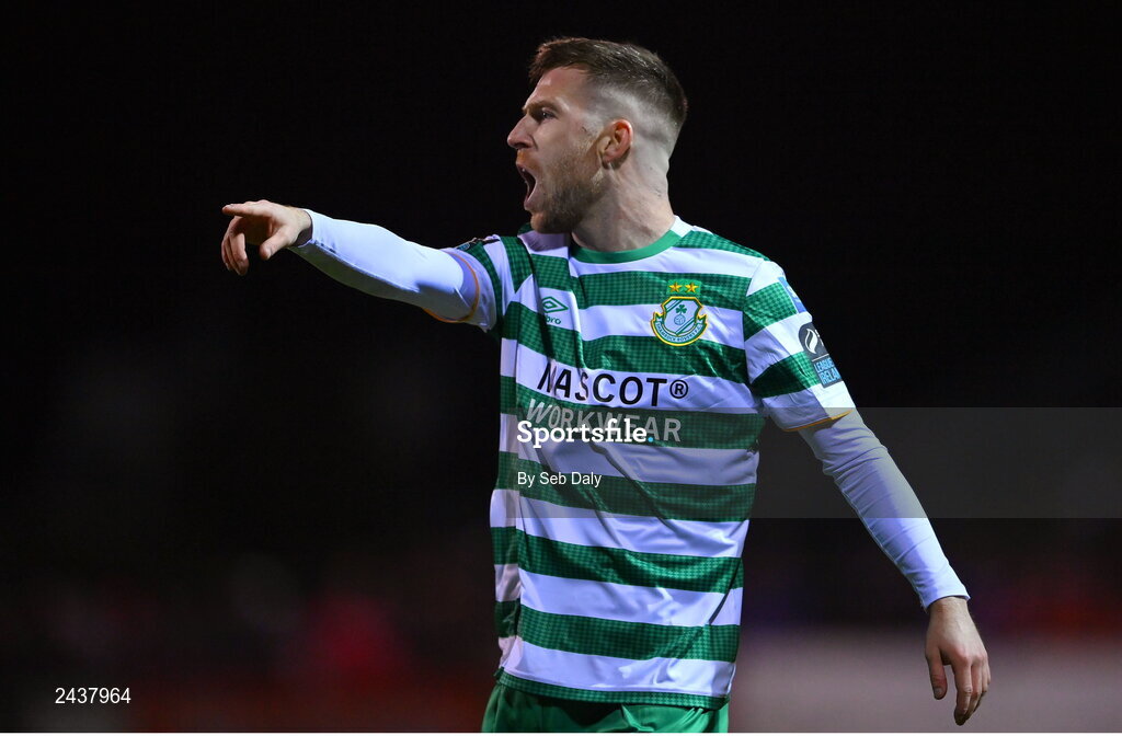18 February 2023; Jack Byrne of Shamrock Rovers during the SSE Airtricity Men's Premier Division match between Sligo Rovers and Shamrock Rovers at The Showgrounds in Sligo. Photo by Seb Daly/Sportsfile