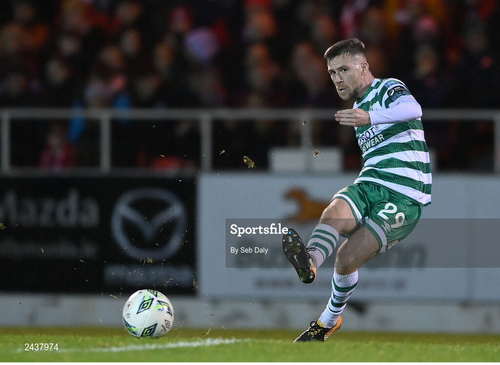 18 February 2023; Jack Byrne of Shamrock Rovers during the SSE Airtricity Men's Premier Division match between Sligo Rovers and Shamrock Rovers at The Showgrounds in Sligo. Photo by Seb Daly/Sportsfile