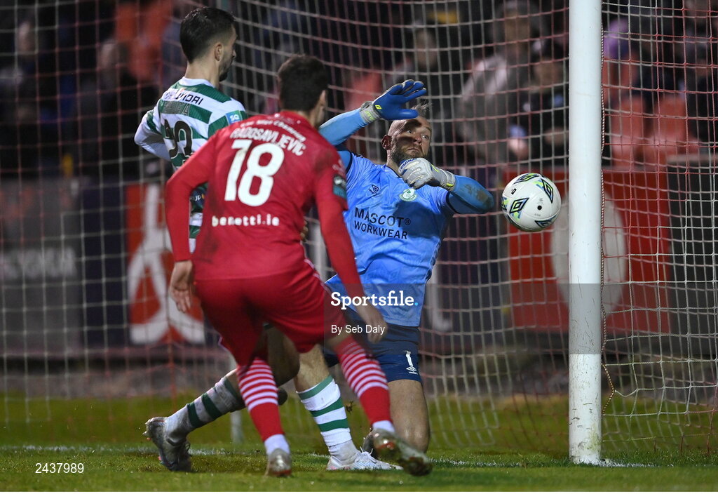 18 February 2023; Shamrock Rovers goalkeeper Alan Mannus makes a save during the SSE Airtricity Men's Premier Division match between Sligo Rovers and Shamrock Rovers at The Showgrounds in Sligo. Photo by Seb Daly/Sportsfile