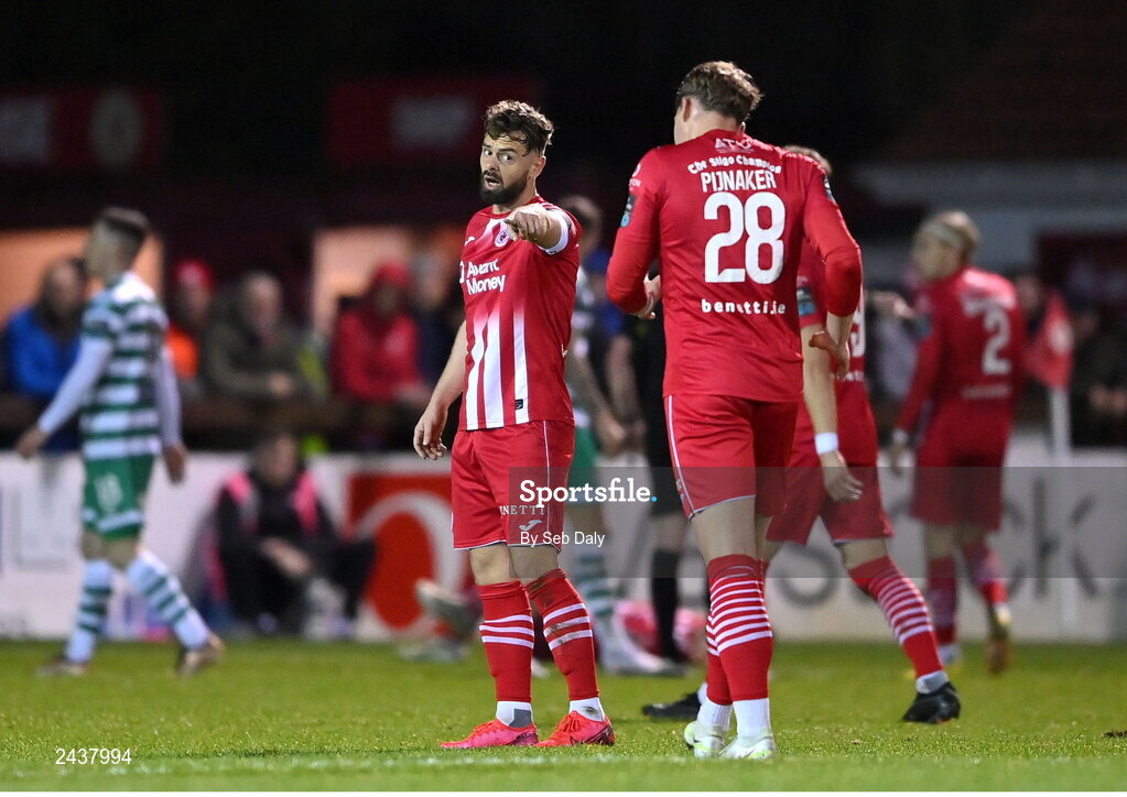 18 February 2023; Greg Bolger of Sligo Rovers during the SSE Airtricity Men's Premier Division match between Sligo Rovers and Shamrock Rovers at The Showgrounds in Sligo. Photo by Seb Daly/Sportsfile