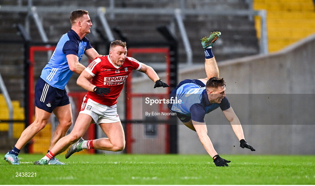 19 February 2023; Brian Hurley of Cork collides with John Small of Dublin during the Allianz Football League Division Two match between Cork and Dublin at Páirc Ui Chaoimh in Cork. Photo by Eóin Noonan/Sportsfile
