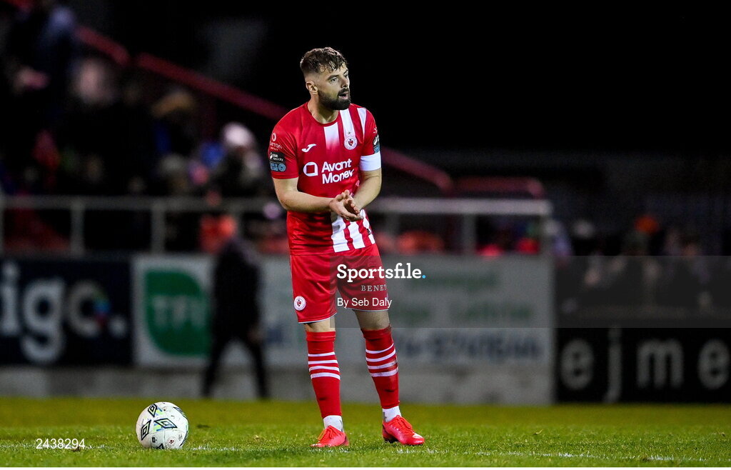 18 February 2023; Greg Bolger of Sligo Rovers during the SSE Airtricity Men's Premier Division match between Sligo Rovers and Shamrock Rovers at The Showgrounds in Sligo. Photo by Seb Daly/Sportsfile