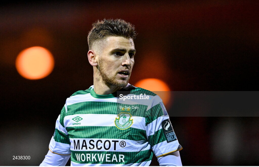 18 February 2023; Dylan Watts of Shamrock Rovers during the SSE Airtricity Men's Premier Division match between Sligo Rovers and Shamrock Rovers at The Showgrounds in Sligo. Photo by Seb Daly/Sportsfile