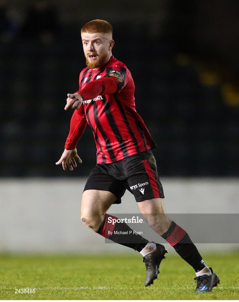 18 February 2023; Aodh Dervin of Longford Town during the SSE Airtricity Men's First Division match between Longford Town and Athlone Town at Bishopsgate in Longford. Photo by Michael P Ryan/Sportsfile