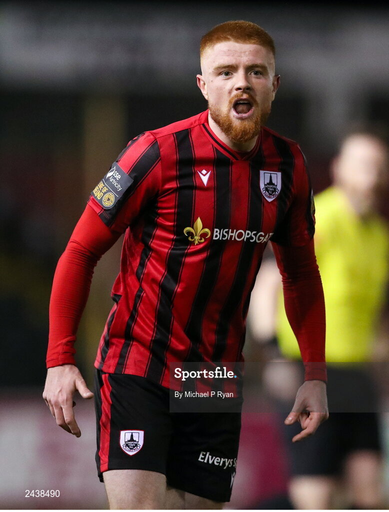 18 February 2023; Aodh Dervin of Longford Town during the SSE Airtricity Men's First Division match between Longford Town and Athlone Town at Bishopsgate in Longford. Photo by Michael P Ryan/Sportsfile