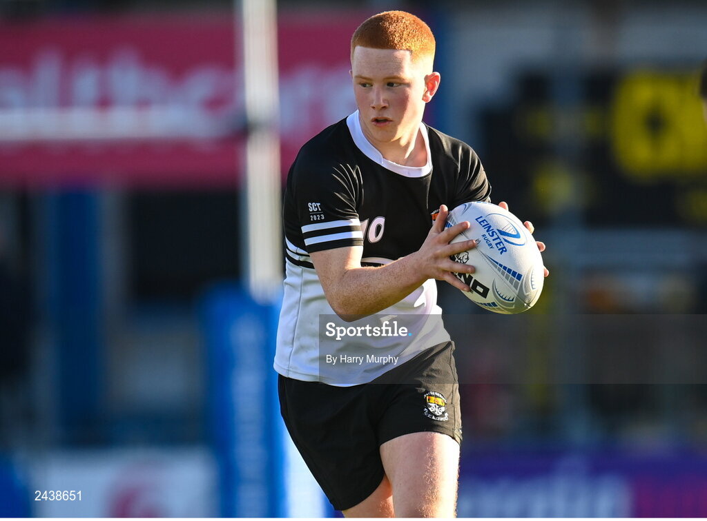 20 February 2023; Paddy Martin of Newbridge College during the Bank of Ireland Leinster Rugby Schools Senior Cup Quarter Final match between CBC Monkstown and Newbridge College at Energia Park in Dublin. Photo by Harry Murphy/Sportsfile