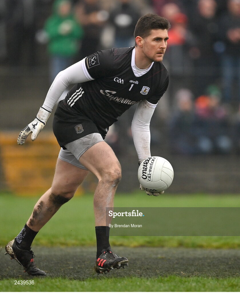 19 February 2023; Galway goalkeeper Connor Gleeson during the Allianz Football League Division One match between Galway and Tyrone at St Jarlath's Park in Tuam, Galway. Photo by Brendan Moran/Sportsfile