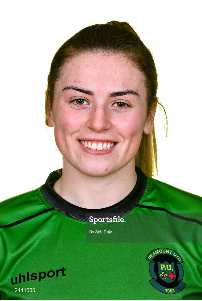 23 February 2023; Sarah Power stands for a portrait during a Peamount United squad portrait session at PRL Park in Greenogue, Dublin. Photo by Seb Daly/Sportsfile