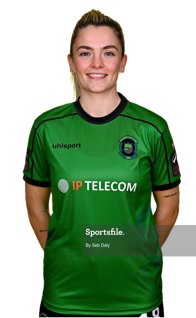 23 February 2023; Avril Brierley stands for a portrait during a Peamount United squad portrait session at PRL Park in Greenogue, Dublin. Photo by Seb Daly/Sportsfile