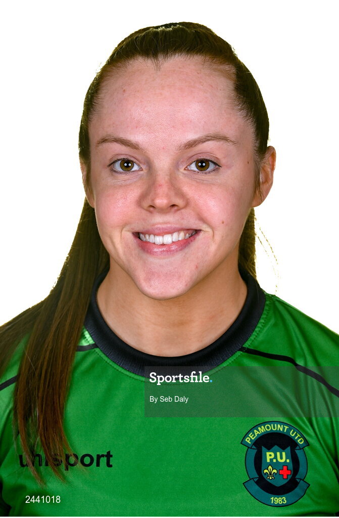 23 February 2023; Carla McManus stands for a portrait during a Peamount United squad portrait session at PRL Park in Greenogue, Dublin. Photo by Seb Daly/Sportsfile