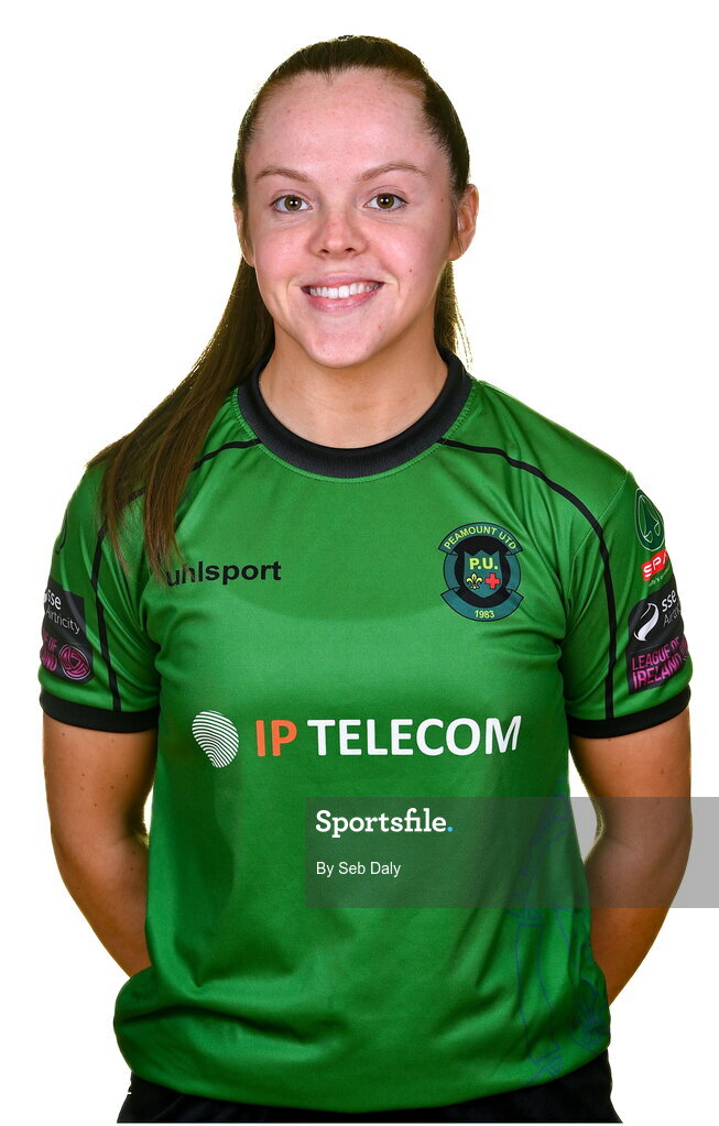 23 February 2023; Carla McManus stands for a portrait during a Peamount United squad portrait session at PRL Park in Greenogue, Dublin. Photo by Seb Daly/Sportsfile
