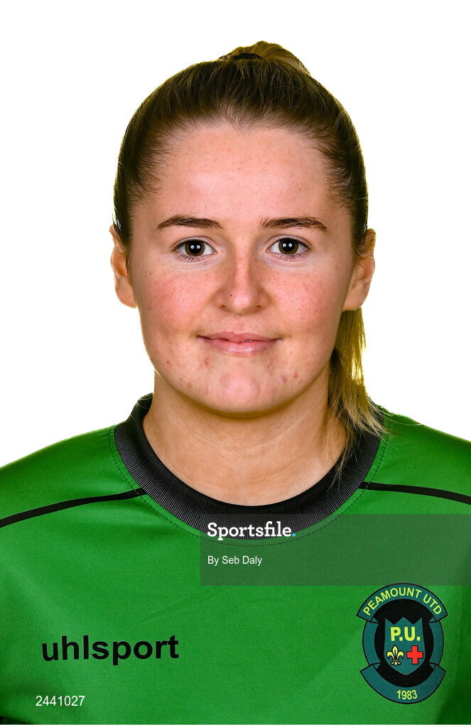 23 February 2023; Erin McLaughlin stands for a portrait during a Peamount United squad portrait session at PRL Park in Greenogue, Dublin. Photo by Seb Daly/Sportsfile