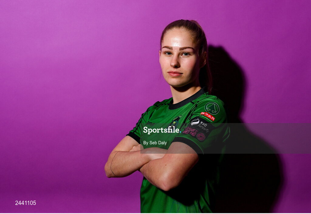 23 February 2023; Tara O’Hanlon poses for a portrait during a Peamount United squad portrait session at PRL Park in Greenogue, Dublin. Photo by Seb Daly/Sportsfile