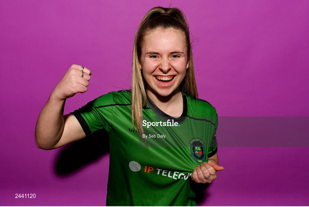 23 February 2023; Rachel McGrath poses for a portrait during a Peamount United squad portrait session at PRL Park in Greenogue, Dublin. Photo by Seb Daly/Sportsfile