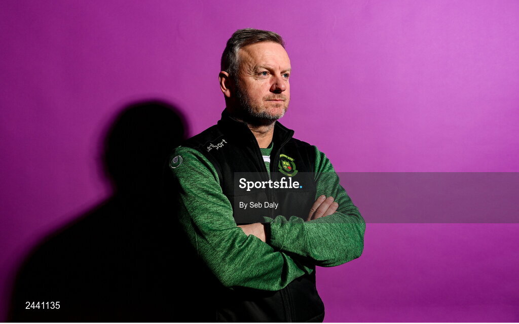 23 February 2023; Manager James O'Callaghan poses for a portrait during a Peamount United squad portrait session at PRL Park in Greenogue, Dublin. Photo by Seb Daly/Sportsfile