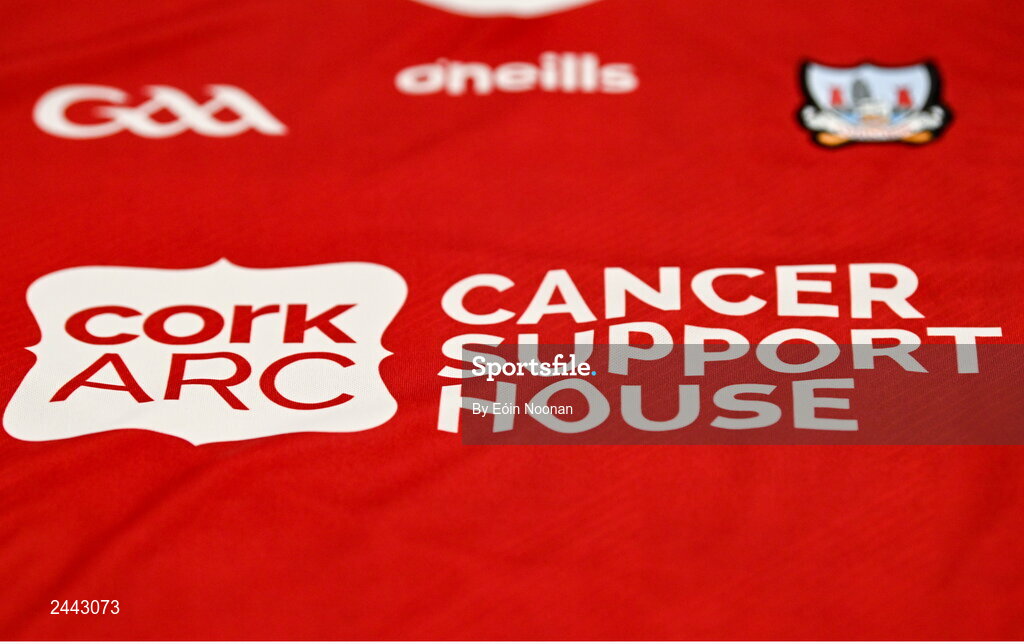 26 February 2023; A detailed view of the Cork ARC logo on the front of the Cork jersey before the Allianz Hurling League Division 1 Group A match between Cork and Westmeath at Páirc Ui Chaoimh in Cork. Photo by Eóin Noonan/Sportsfile