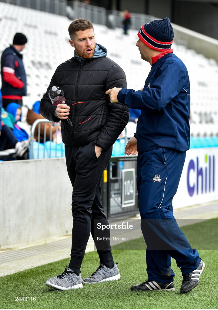 26 February 2023; Conor Lehane of Cork speaking to Cork analyst Paul O'Sullivan before the Allianz Hurling League Division 1 Group A match between Cork and Westmeath at Páirc Ui Chaoimh in Cork. Photo by Eóin Noonan/Sportsfile