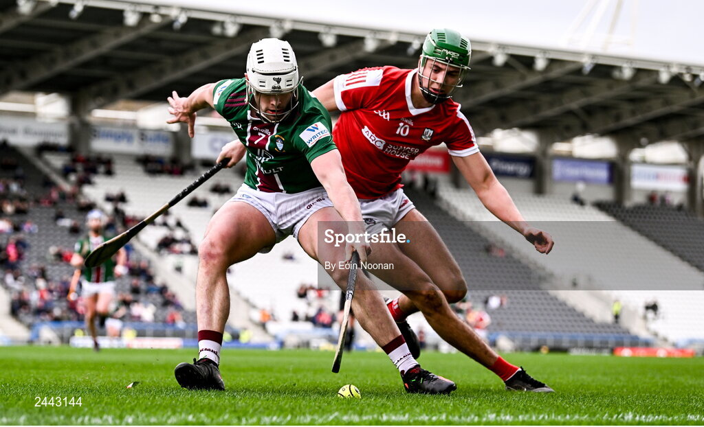 26 February 2023; Jack Galvin of Westmeath in action against Ben Cunningham of Cork during the Allianz Hurling League Division 1 Group A match between Cork and Westmeath at Páirc Ui Chaoimh in Cork. Photo by Eóin Noonan/Sportsfile