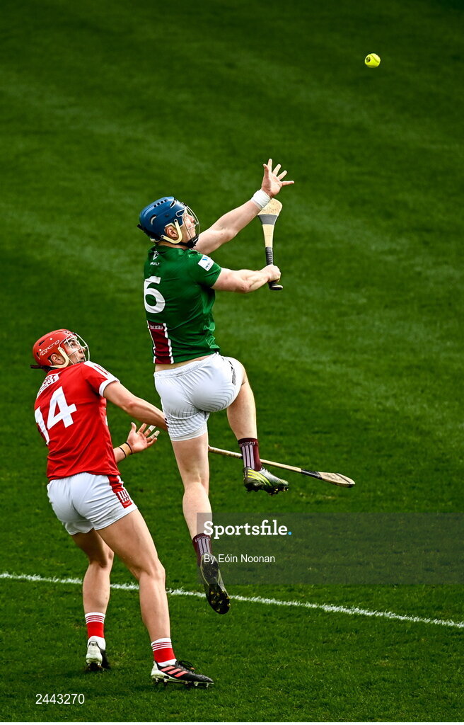 26 February 2023; Tommy Doyle of Westmeath in action against Brian Hayes of Cork during the Allianz Hurling League Division 1 Group A match between Cork and Westmeath at Páirc Ui Chaoimh in Cork. Photo by Eóin Noonan/Sportsfile