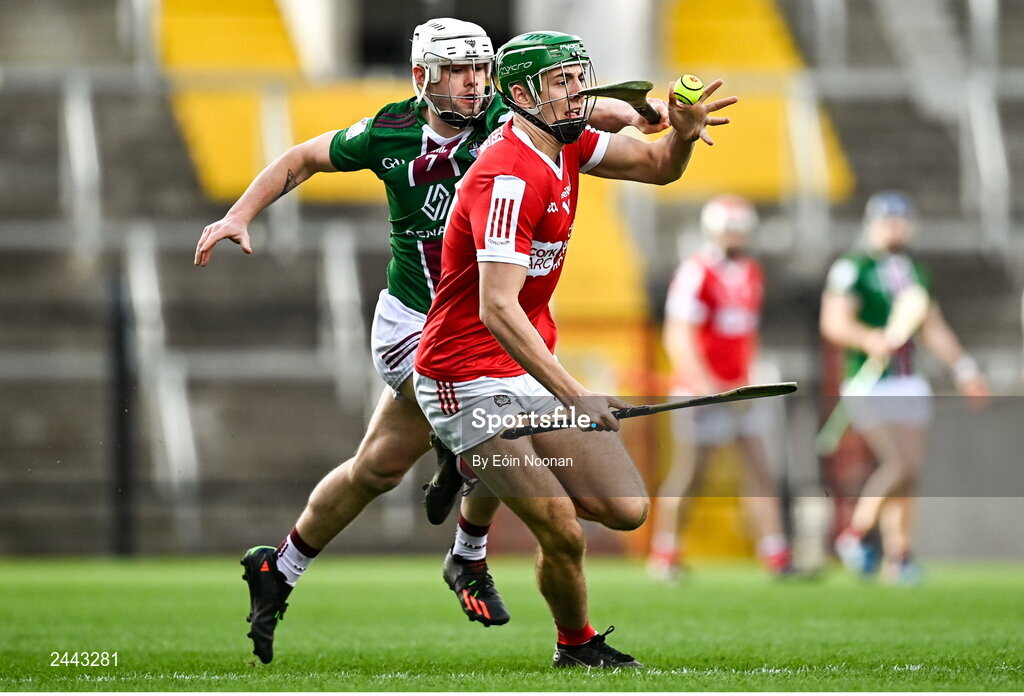 26 February 2023; Ben Cunningham of Cork in action against Jack Galvin of Westmeath during the Allianz Hurling League Division 1 Group A match between Cork and Westmeath at Páirc Ui Chaoimh in Cork. Photo by Eóin Noonan/Sportsfile