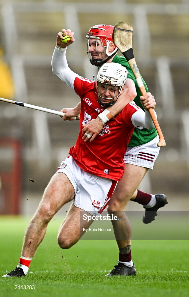 26 February 2023; Luke Meade of Cork is tackled by Shane Calvin of Westmeath during the Allianz Hurling League Division 1 Group A match between Cork and Westmeath at Páirc Ui Chaoimh in Cork. Photo by Eóin Noonan/Sportsfile