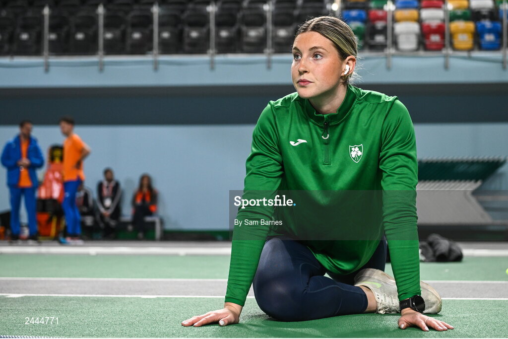 1 March 2023; Kate O'Connor of Ireland trains ahead of the European Indoor Athletics Championships at Ataköy Athletics Arena in Istanbul, Türkiye. Photo by Sam Barnes/Sportsfile