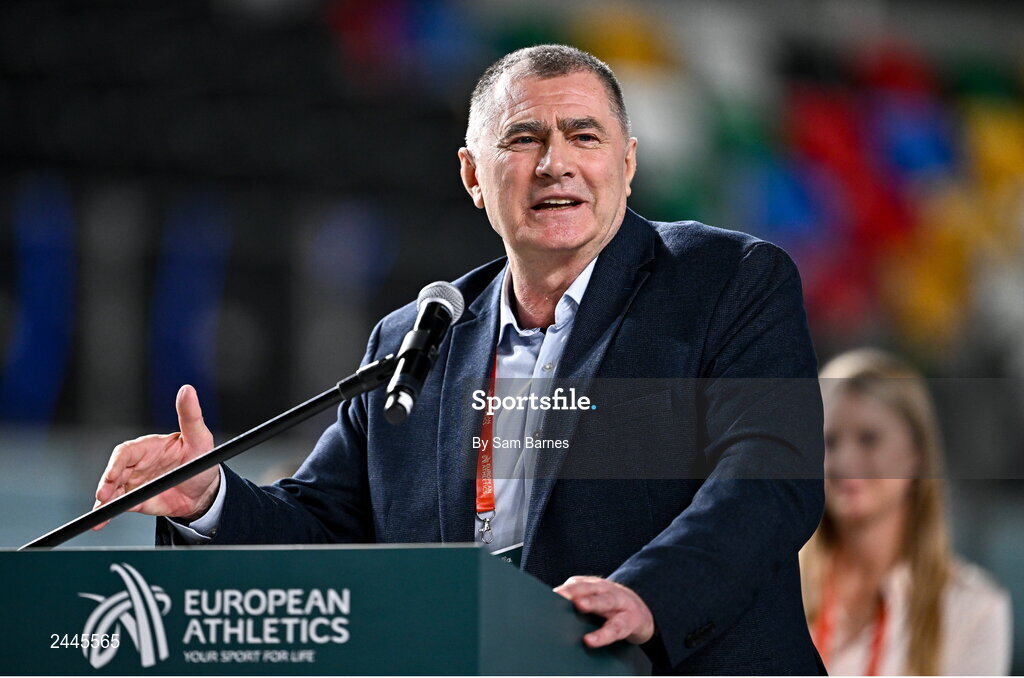 2 March 2023; European Athletics President Dobomir Karamarinov speaking during a press conference ahead of the European Indoor Athletics Championships at Ataköy Athletics Arena in Istanbul, Türkiye. Photo by Sam Barnes/Sportsfile