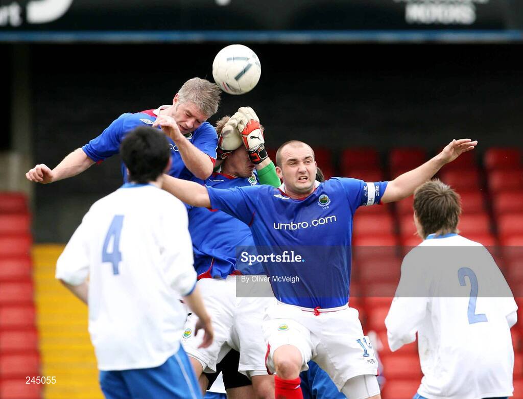 21 April 2007; Linfield's William Murphy and Paul McAreavey in action against Paul Rice, Glenavon. Carnegie Premier League, Linfield v Glenavon, Windsor Park, Belfast, Co. Antrim. Picture credit; Oliver McVeigh / SPORTSFILE