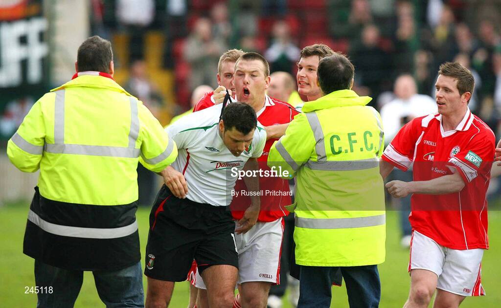 21 April 2007; Declan O'Hara, Cliftonville, is seperated from Dean Fitzgerald, Glentoran. Carnegie Premier League, Cliftonville v Glentoran, Solitude, Belfast, Co. Antrim. Picture credit; Russell Pritchard / SPORTSFILE