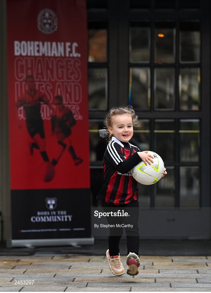 13 March 2023; Bella Harte, age 4, from Chapleizod, during the launch of Bohemian FC's Football Social Responsibility and Community Strategy at the Mansion House in Dublin. Photo by Stephen McCarthy/Sportsfile