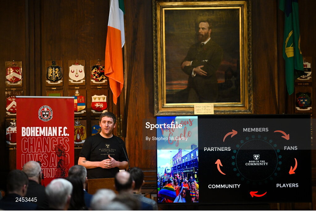 13 March 2023; Daniel Lambert, chief operating officer, Bohemian Football Club, during the launch of Bohemian FC's Football Social Responsibility and Community Strategy at the Mansion House in Dublin. Photo by Stephen McCarthy/Sportsfile