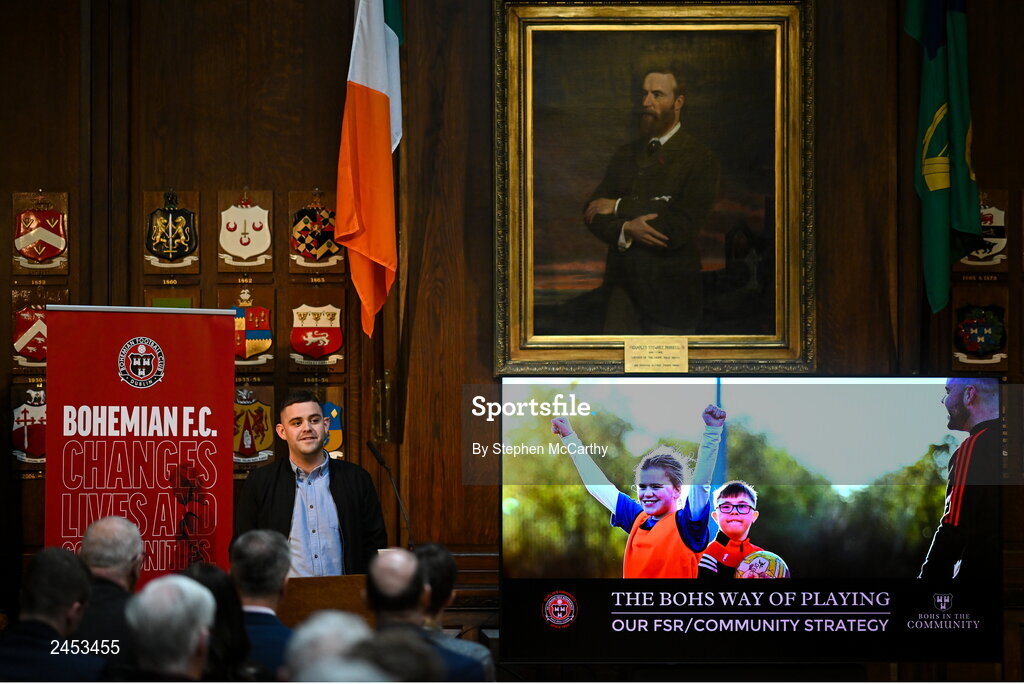 13 March 2023; James Flanagan, football social responsibility manager, Bohemian Football Club, during the launch of Bohemian FC's Football Social Responsibility and Community Strategy at the Mansion House in Dublin. Photo by Stephen McCarthy/Sportsfile