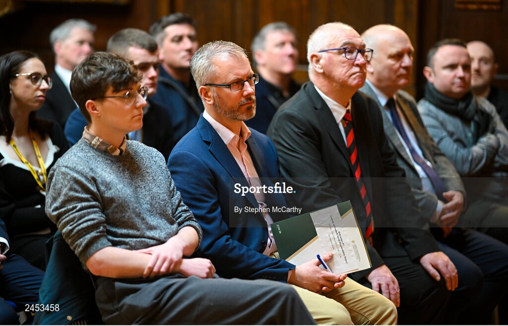 13 March 2023; Roderic O'Gorman TD, Minister for children, equality, disability, integration and youth, centre, during the launch of Bohemian FC's Football Social Responsibility and Community Strategy at the Mansion House in Dublin. Photo by Stephen McCarthy/Sportsfile
