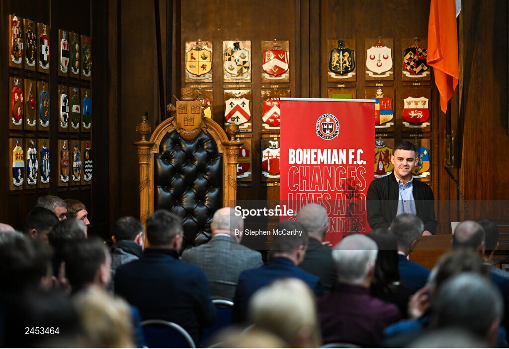 13 March 2023; James Flanagan, football social responsibility manager, Bohemian Football Club, during the launch of Bohemian FC's Football Social Responsibility and Community Strategy at the Mansion House in Dublin. Photo by Stephen McCarthy/Sportsfile