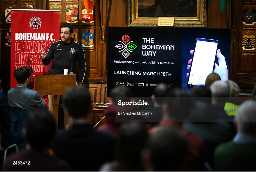 13 March 2023; Sean McCabe, head of climate justice & sustainability, Bohemian Football Club, during the launch of Bohemian FC's Football Social Responsibility and Community Strategy at the Mansion House in Dublin. Photo by Stephen McCarthy/Sportsfile