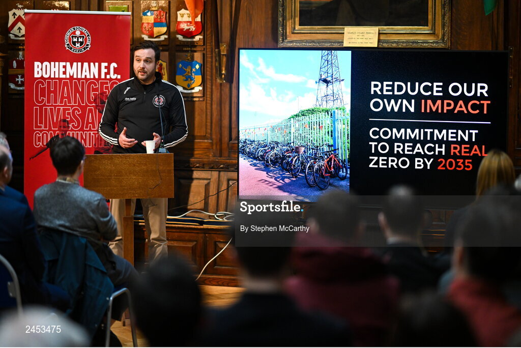 13 March 2023; Sean McCabe, head of climate justice & sustainability, Bohemian Football Club, during the launch of Bohemian FC's Football Social Responsibility and Community Strategy at the Mansion House in Dublin. Photo by Stephen McCarthy/Sportsfile