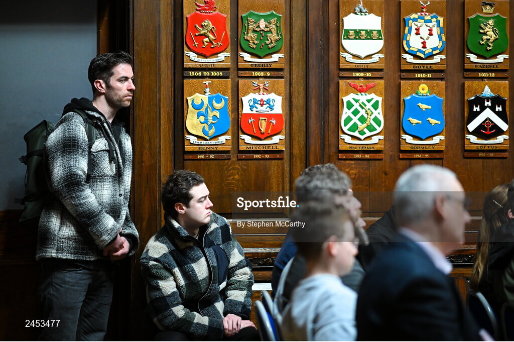 13 March 2023; Michael Daragh McAuley, community sport & wellbeing co-ordinator, North East Inner City area of Dublin, left, during the launch of Bohemian FC's Football Social Responsibility and Community Strategy at the Mansion House in Dublin. Photo by Stephen McCarthy/Sportsfile