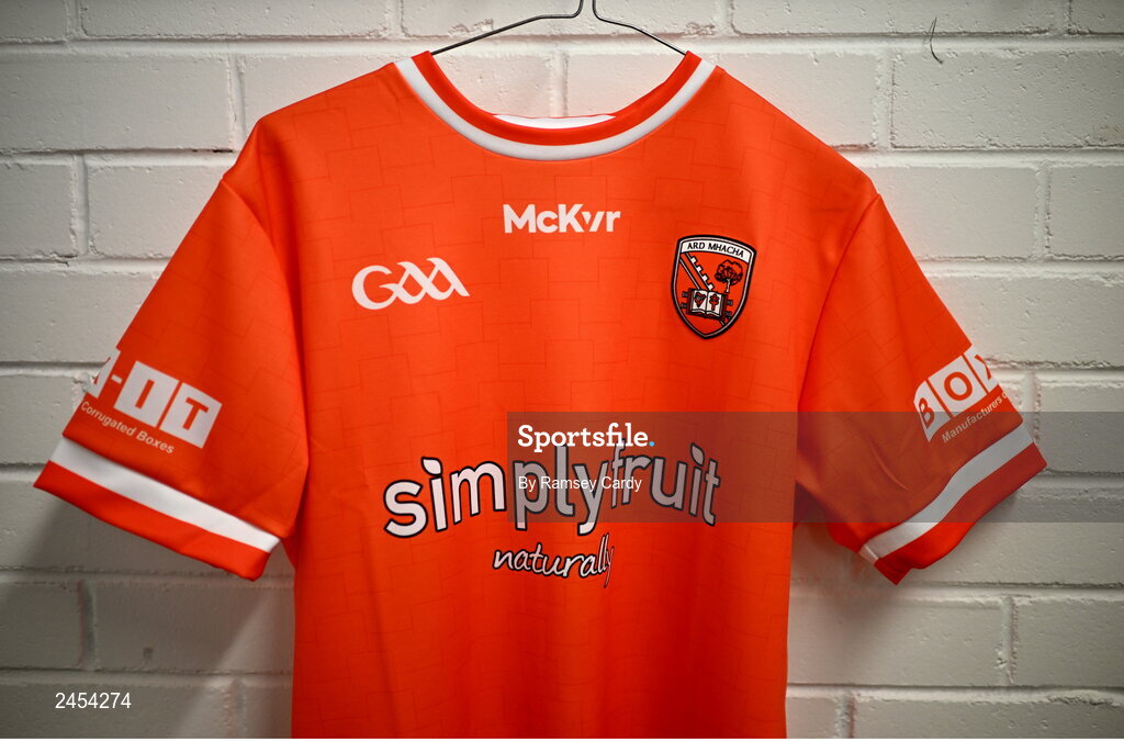 13 March 2023; A general view of an Armagh football jersey at BOX-IT Athletic Grounds in Armagh. Photo by Ramsey Cardy/Sportsfile