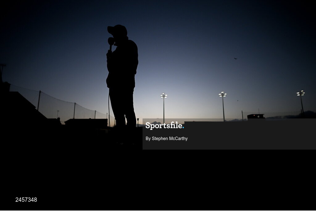 16 March 2023; Dundalk head coach Stephen O'Donnell speaks to LOI TV before the SSE Airtricity Men's Premier Division match between Drogheda United and Dundalk at Weavers Park in Drogheda, Louth. Photo by Stephen McCarthy/Sportsfile