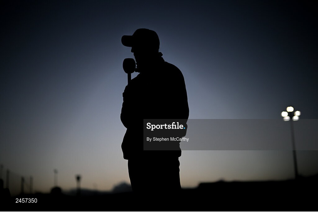 16 March 2023; Dundalk head coach Stephen O'Donnell speaks to LOI TV before the SSE Airtricity Men's Premier Division match between Drogheda United and Dundalk at Weavers Park in Drogheda, Louth. Photo by Stephen McCarthy/Sportsfile