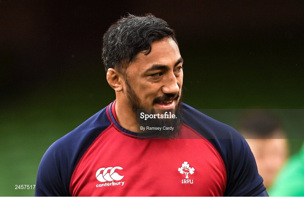 17 March 2023; Bundee Aki during the Ireland rugby captain's run at the Aviva Stadium in Dublin. Photo by Ramsey Cardy/Sportsfile