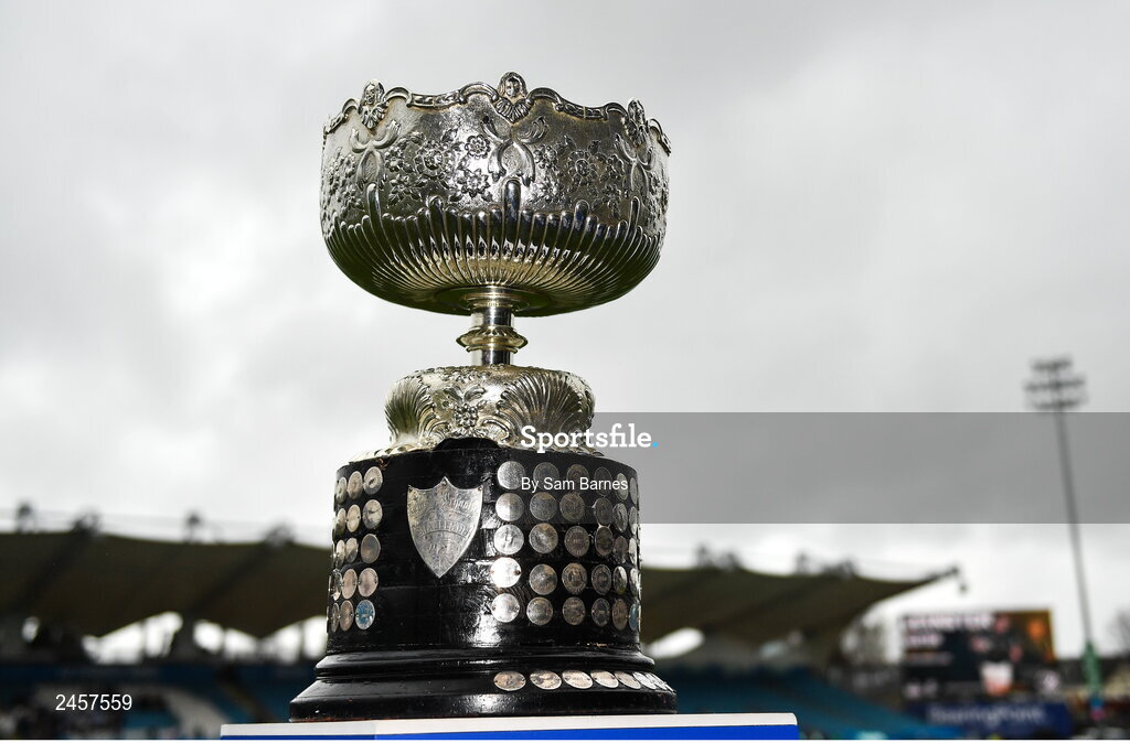 17 March 2023; A general view of the cup before the Bank of Ireland Leinster Schools Senior Cup Final match between Gonzaga College and Blackrock Collegee at RDS Arena in Dublin. Photo by Sam Barnes/Sportsfile