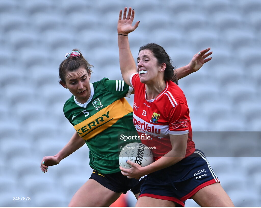 17 March 2023; Ciara O'Sullivan of Cork in action against Cáit Lynch of Kerry during the Lidl Ladies National Football League Division 1 match between Cork and Kerry at Páirc Uí Chaoimh in Cork. Photo by Piaras Ó Mídheach/Sportsfile