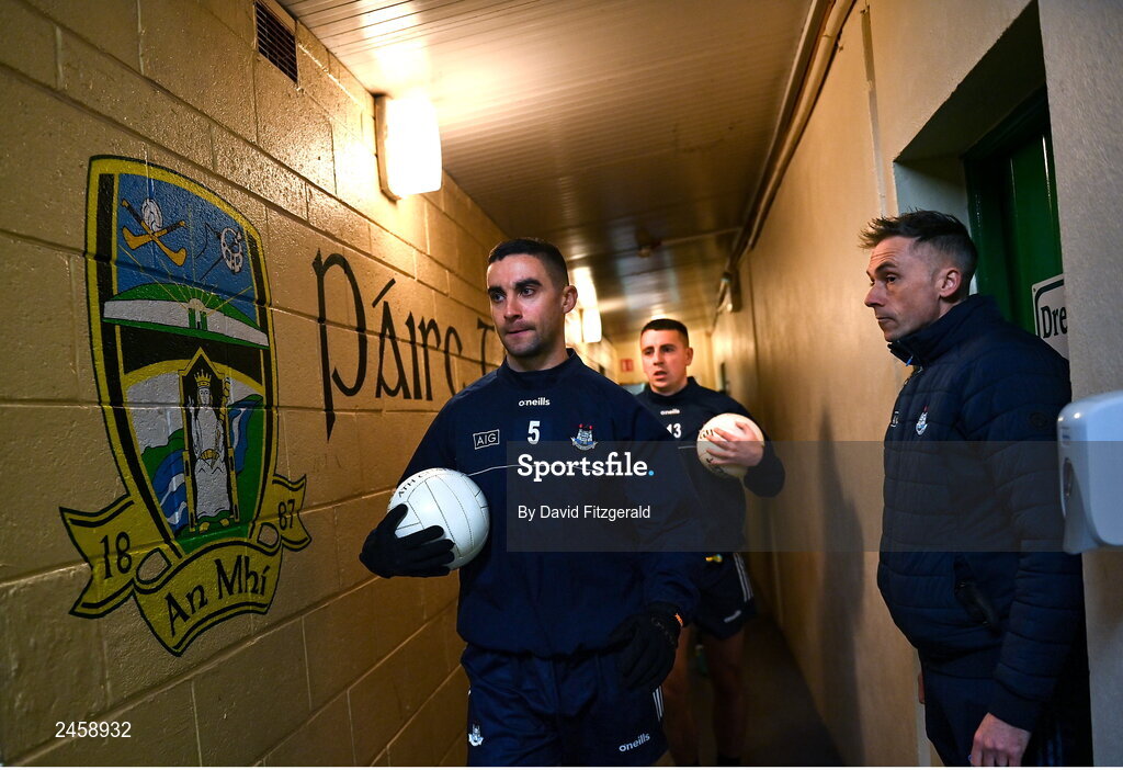 18 March 2023; James McCarthy of Dublin leads out the team before the Allianz Football League Division 2 match between Meath and Dublin at Páirc Tailteann in Navan, Meath. Photo by David Fitzgerald/Sportsfile